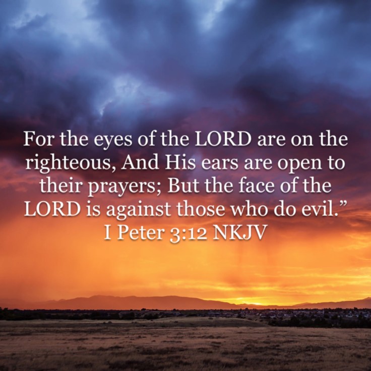 The Lord watches over those whom He has clothed in His righteousness by grace alone through faith alone: He protects and provides for their every need, especially during extreme trials and tribulation. Second, He hears their prayers prayed by faith without doubting that He will answer them according to His good purpose for the righteous and His glory – This means He will not answer according exactly the way He would expect Him to, but rather what is best for the righteous in Christ according to His predetermined plan, which is always good, though we may need to suffer for a while longer. Third, you can be assured that the Lord will never hear the prayer of those who do evil; that is, who unrepentantly practice evil in rebellion and unbelief. The Lord, on the contrary, sets His whole countenance against the evil doer, unless he is coming to the Lord in repentance of sin and faith in Jesus Christ alone for the forgiveness of sin, salvation, righteouness and everlasting life. May God us all grace to come to Him alone in our time of trouble in the confidence of these truths – Soli Deo Gloria!