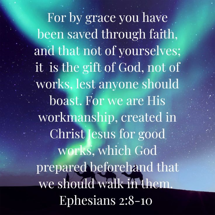 Second, salvation is through faith. This aspect speaks of the gift that enables the sinner to embrace with a believing heart all that Christ accomplished and merited in His death and resurrection, the forgiveness of sins, righteousness, salvation and everlasting life belongs, not only to others, but him or her also. This gift of faith is different from any kind of faith that any person can muster from within his inner most being; it is “not of yourselves.” If the faith that saves is of our own doing then salvation would be of works, not of grace; and we would have something to boast about. But the faith that is gift from God, the Holy Spirit, is a faith that neither fades, nor forsakes it object, which is the person and work of Jesus Christ. It endures until the day of redemption. Human faith will wither under the heat of trials and tribulations; true faith from God will persevere and even glory in tribulation (Romans 5:3). No human faith or will power can do that. The gift of faith is also evidence of a heart and life that has been regenerated and renewed by the Holy Spirit. Salvation and the hope of everlasting life belongs to all who come to Jesus Christ through the means of true faith, the gift of God, and in repentance of their sins, not because of their faith. Faith is the outward evidence of an inward transformation by the Holy Spirit, who also gives the believer a desire to serve by faith His Savior all the days of His life with good works. This leads us to the third aspect or element of salvation.