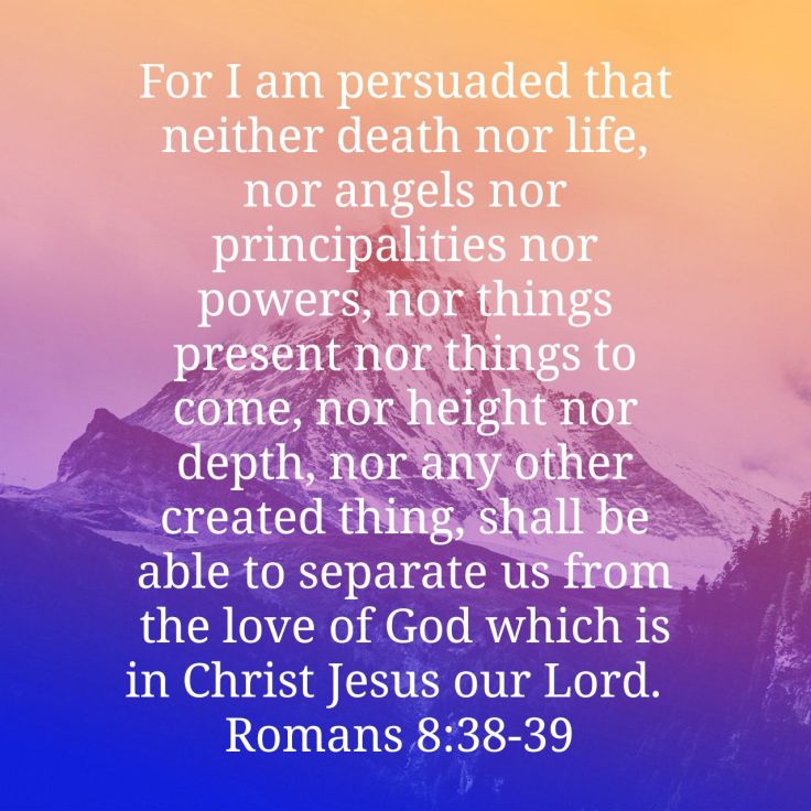 A dear brother in Christ recently reminded me of these verses when he suggested a change to a slogan being used by Reformation Gospel Ministries (still considering the change). No matter what the believer in Christ goes through in this life he will always have the assurance that because he has been saved and purchased by the blood of Jesus Christ the “love of God which in Christ Jesus our Lord” will never change; never weaken, waiver, or be withheld. The reason the beliver has this assurance is because salvation is not because of anything he has done, or anything in him; it is by grace alone through faith in Jesus Christ alone, a unconditional, unearned gift from God through washing and regeneratin work of the Holy Spirit.