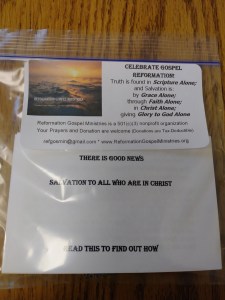 Please pray that the Lord will bless this effort to spread the Gospel message in this way, using it bring sinner to repentance of their sins and faith in Jesus Christ for the forgiveness of sins, righteousness, salvation, and everlasting life to the glory of God alone.