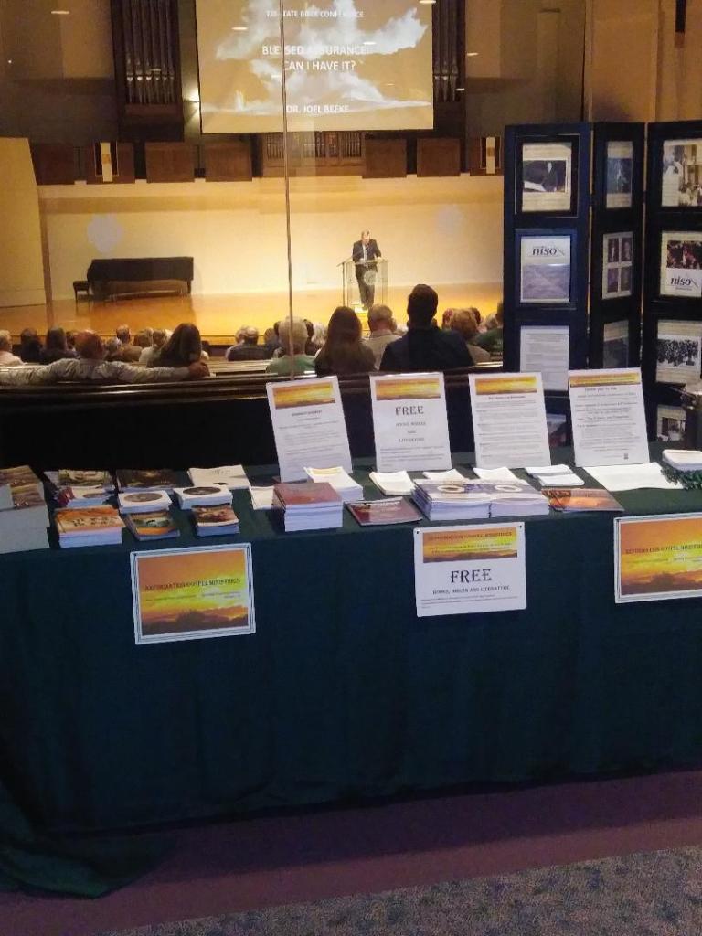 This past weekend (September 27th & 28th of 2019) Reformation Gospel Ministries was given the opportunity to have its table of Bibles, books, and gospel tracts set up at the Tri-State Bible Conference held at Dordt University, BJ Haan Auditorium. Many who attended the conference showed interest in the work of Reformation Gospel Ministries (one who was interested in volunteering to help). They also took many of our free books and tracts. The books given away included the 3 Forms of Unity (RCUS, 2011), “The Complete Gospel,” published by the Omaha Reformed Church (RCUS), and books published by Creation Ministries International. Will need to re-order several books to restock the table – Praise the Lord!