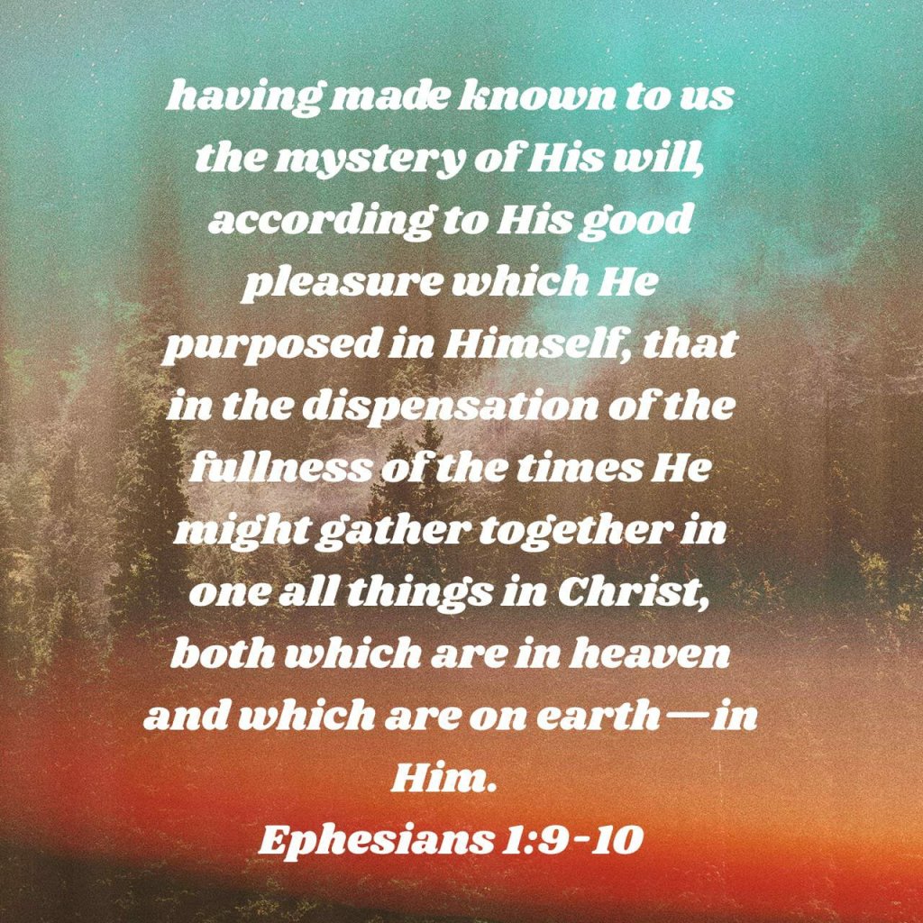 Trouble is all around us seeking to engulf us; but no matter what our nation is going through at this time (or anywhere in the world for that matter) we know that as we prayerfully contemplate these 2 verse we are to be reassured God is working His perfect plan; that is, He is gathering “together in one all things in Christ.” From the time Christ came and having taking on Him the very nature of man God has been gathering His sinners into His kingdom through Him who paid the penalty for our sin in one atoning sacrifice and defeated death in His resurrection whereby He obtained for sinners the forgiveness of sins, righteousness, salvation and everlasting life.