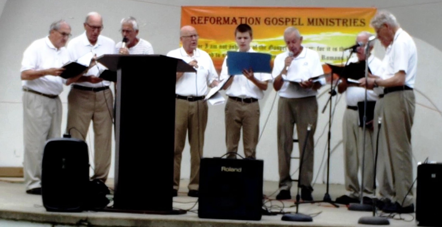 At each Gospel in the Park event a gospel message was preached by Rev. Stetler and there were gospel songs sung: Christian Postma sang and played his guitar at 3 of the events and a men’s chorus sang at one of the events.