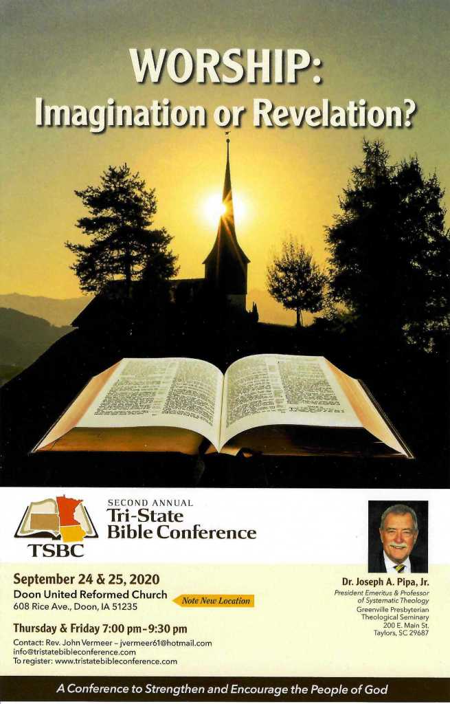 Reformation Gospel Ministries was given the privilege of having a table at the conference with Dr. Joseph Pipa, Jr. speaking on “Worship: Imagination or Revelation?” on September 24th and 25th at Doon United Reformed Church, Doon, IA