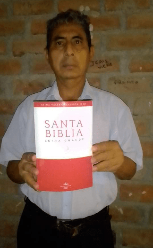 Rev. Jaime is excited to receive the Bibles to give to converts in Peru