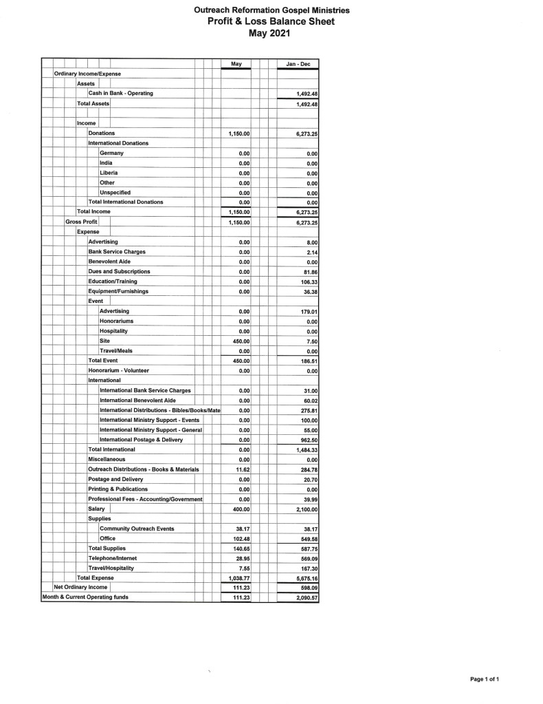 Because we had received some generous donations we are excited to report for May we were able to continue to send gospel tracts and Bibles for distribution in India and Nigeria by the indigenous ministries in each country. We note the following in particular: