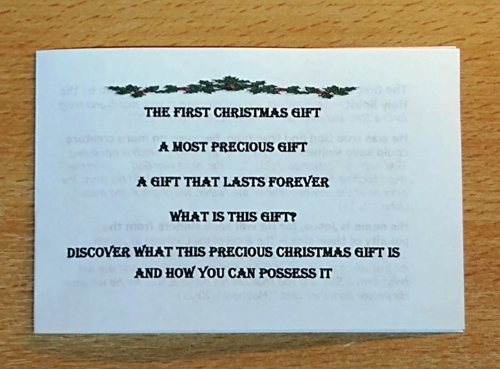 Click link to download tract (4 tracts on a single sheet; both sides): The First Christmas Gift- PDF