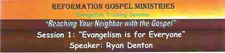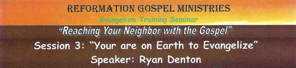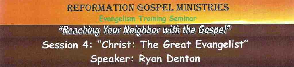 The speaker for each session was Rev. Ryan Denton – a Presbyterian minister, evangelist, and church planter (Vanguard Presbyterian Church). His work on evangelism has appeared at RHB, Desiring God, Founders Ministries, The Confessional Presbyterian, and others. He has a Th.M. from Puritan Reformed Theological Seminary.
