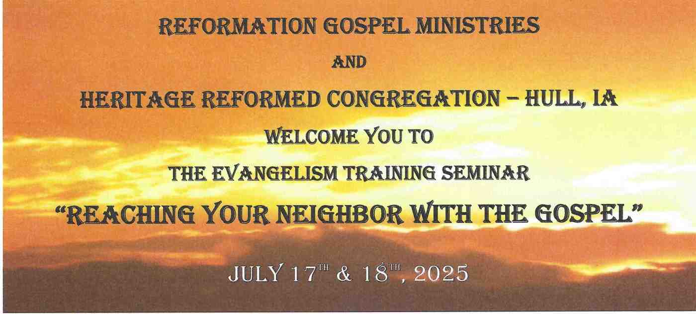 The seminar was held at Heritage Reformed Congregation, 204 3rd Street, Hull, IA